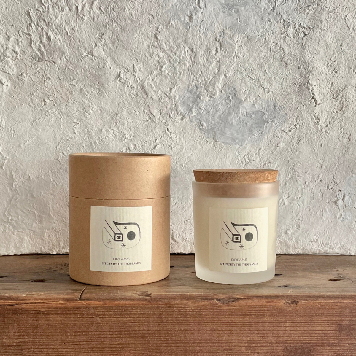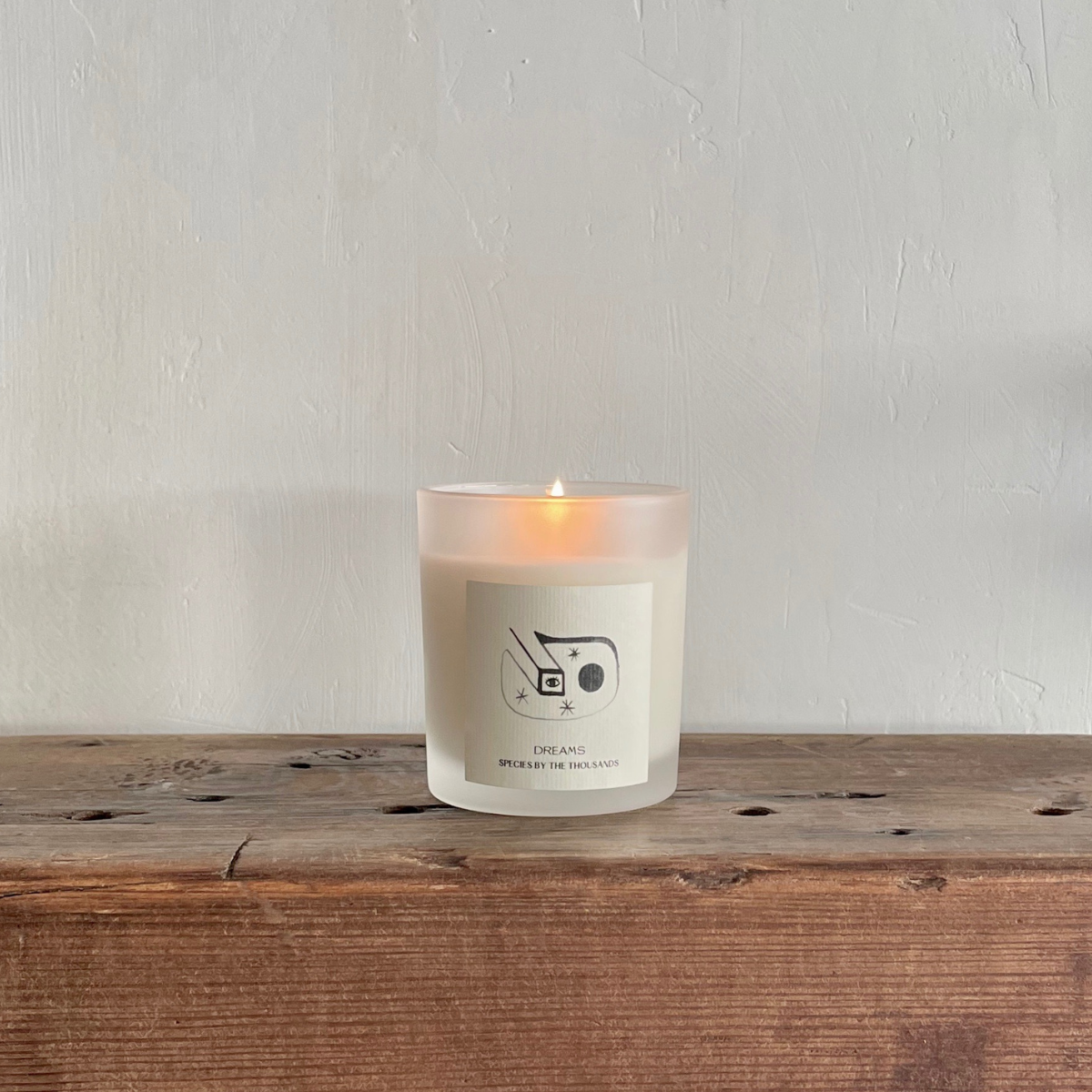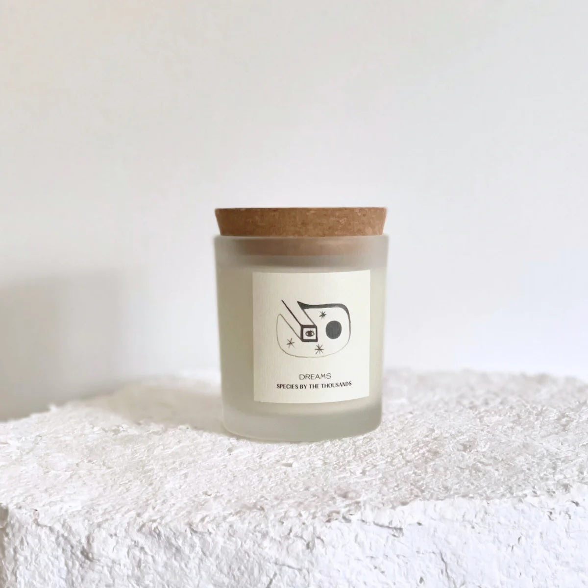 ⽩い曇りガラスの容器に、 Species by the Thousandsオリジナルのイラストがデザインされています。